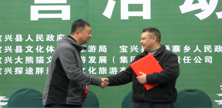 开营仪式上,邓池沟村与水峪村顺利签订结对共建协议;宝兴探途胖达文化旅游有限公司与雅安市文旅集团签订大熊猫文化溯源之旅研学合作协议。