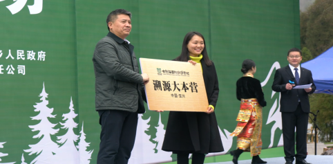 大熊猫国家公园雅安管理分局党组成员、副局长王岩飞授牌宝兴探途胖达文化旅游有限公司“大熊猫国际溯源营地溯源大本营”;宝兴县蜂桶寨乡邓池沟村与房山区青龙湖镇水峪村相互颁发“荣誉村民”。
