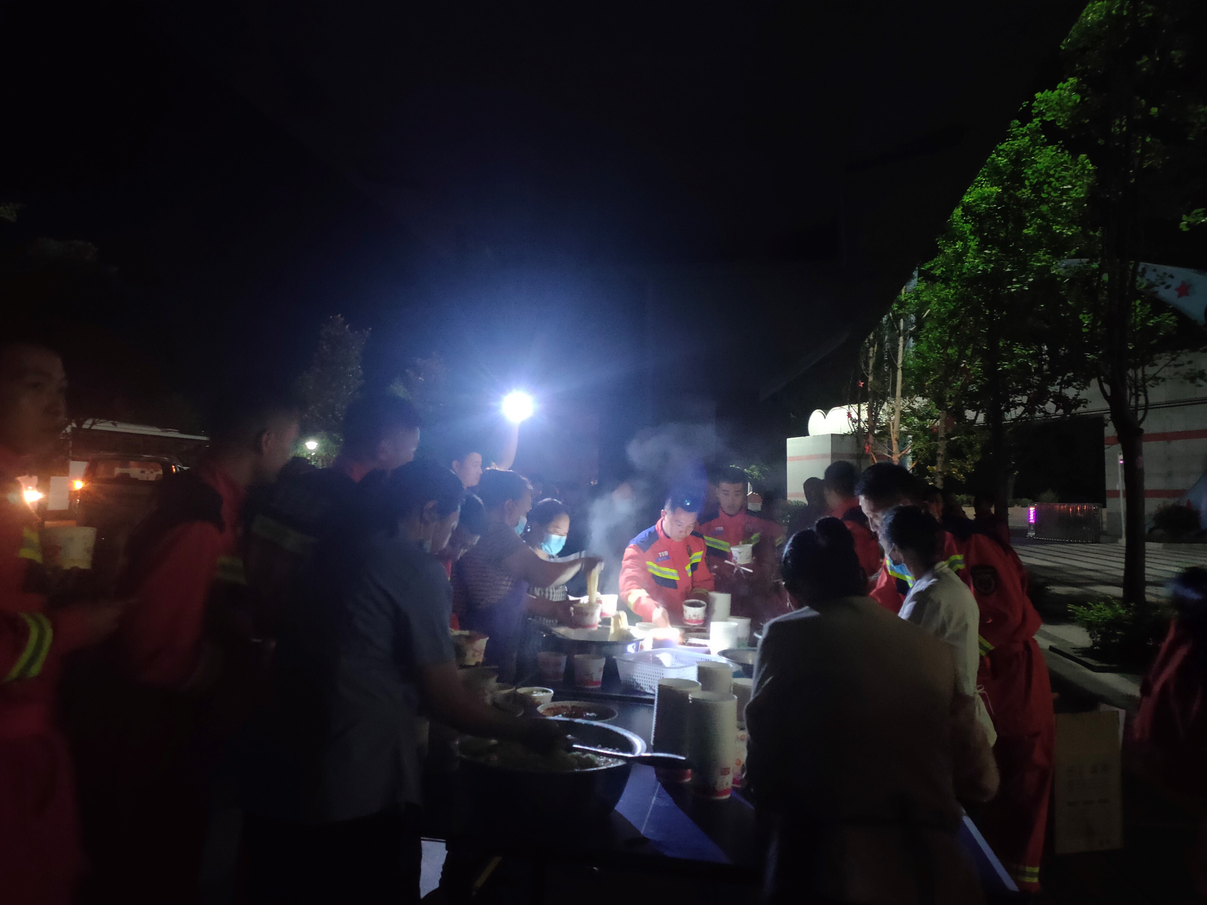 为了给县抗震救灾指挥部人员及外来救援人员提供周到的后勤保障服务,公司后勤服务公司、机关食堂、物业公司人员不管时间有多晚,哪里有需要,他们就出现在哪里。6月1日晚上23:00,后勤服务公司为500名武警官兵送上了热烹烹的面条。机关食堂积极准备,准时为县抗震救灾指挥部人员及外来救援人员送上了香烹烹盒饭。物业公司全天候周到细致的为县抗震救灾指挥部提供会务服务,安排专人员24小时维护指挥部周边秩序。